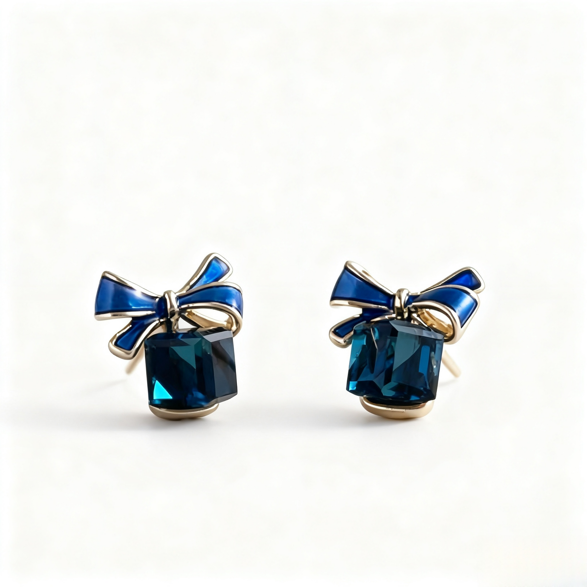 Klein Blue Elegance – Vintage Bow Stud Earrings, Minimal & Refined