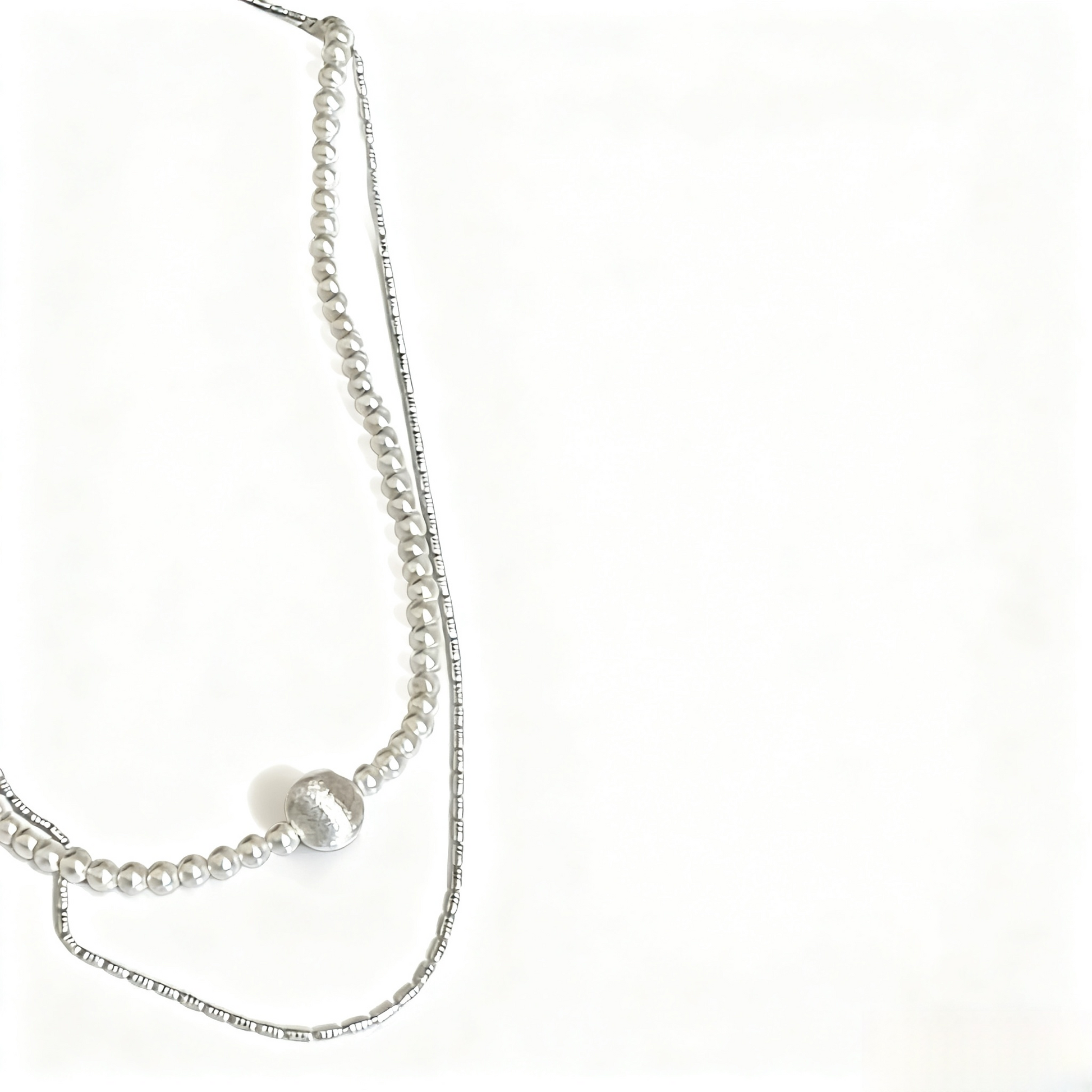 Simple Droplet Pearl Layered Chain Choker Necklace